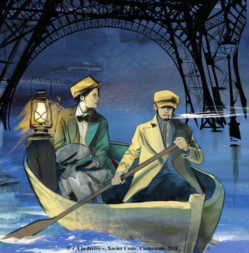 Xavier Coste : À la dérive est le premier livre inspiré d’un fait divers que j’ai publié. C’est en lisant la presse ancienne sur Internet que j’ai découvert ce fait divers. À l’époque, je parcourais quotidiennement la presse ancienne à la recherche d’un sujet qui me permettrait d’évoquer la crue de Paris en 1910. C’est un phénomène que je trouvais très intéressant à traiter visuellement. Mais pour le faire dans une BD, il me fallait un prétexte que j’ai rapidement trouvé lorsque j’ai découvert qu’il y avait eu un braquage près de l’Opéra de Paris, en 1903. Ce braquage était d’autant plus intéressant à traiter qu’il avait été orchestré en partie par Eddie Guerin, l’un des braqueurs, qui s’était enfui d’un bagne. En revanche, j’ai triché un peu puisque ce fait divers a eu lieu quelques années avant la crue de Paris, mais comme je voulais à tout prix dessiner ce phénomène, j’ai déplacé l’intrigue en 1910.