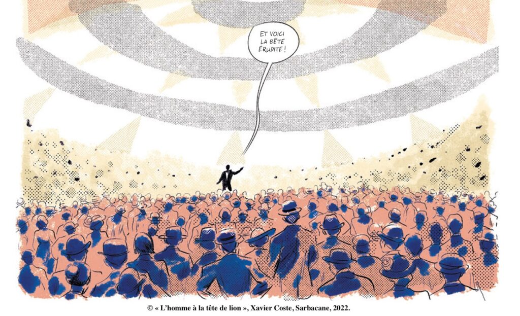 Xavier Coste : J’ai découvert un jour, par hasard, une photo incroyable du circassien Hector Bibrowski surnommé Lionel. C’est une photo qui m’a assez intrigué au point de vouloir réaliser une bande dessinée sur le personnage. Mais pendant presque six ans, je n’ai pas pu concevoir le livre faute d’idées sur la façon de traiter le sujet. Je m’y suis mis lorsque j’ai réalisé que j’avais plus envie de réaliser un livre fantasmé sur les personnages, au lieu d’un livre réellement documenté. Par exemple, les personnages avec lesquels les freaks interagissent sont des personnages qu’ils n’auraient pas pu rencontrer, ils n’étaient pas sur terre à la même époque. Mais j’aime bien cette idée de rencontre imaginaire et improbable.